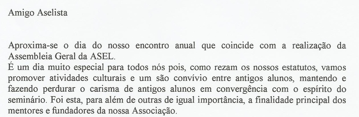 Caros ASELISTAS, Irmãos e Amigos